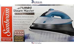 Experience the wrinkle blasting power of the new sunbeam turbo steam master professional iron with retractable cord.